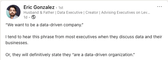 What do you want to be known for? Is it leading impactful data strategy? Building high-performing teams? Translating business goals into data outcomes? Get clear and be consistent.Tell one story, often