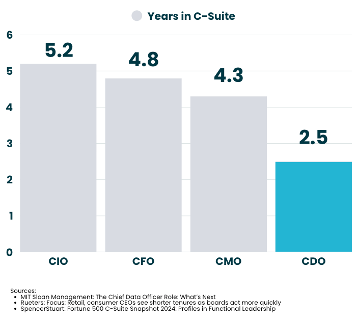 Curiously, CDOs are among the shortest tenured C-suite roles. This is largely attributed to their failure to demonstrate ROI for their organisations - a symptom of poor data strategy alignment with overarching business goals.