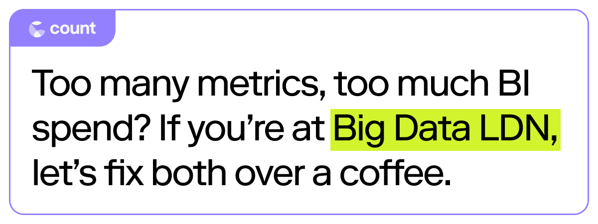 Want to build out something similar? Book in 15 minutes here and we can sketch it out together - or come see us at Big Data London next month, we're at booth G40.