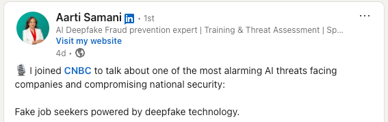 Aarti Samani - Rise in fake job seekers fuelled by AI