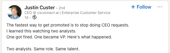 Block calendar time for analysis, thinking, and planning. No Slack, no meetings, no noise. One hour of focused thinking is worth ten hours of reactive busyness.